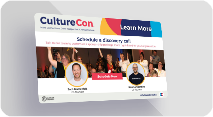CultureCon 2026 Partnerships Page 20 Page 22Learn More Schedule a discovery call Talk to our team to customize a sponsorship package thats right-fitted for your organization. Zach Blumenfeld Co-founder Schedule Now Nick Lombardino Co-founder